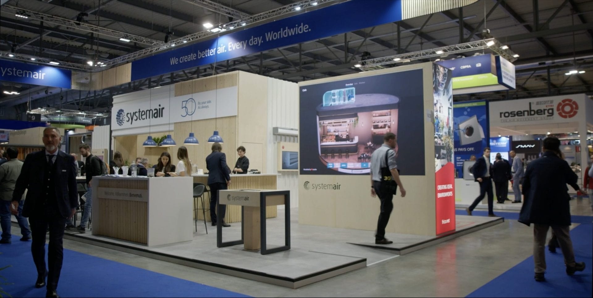This approach standardised Systemair’s booth designs, ensuring a consistent brand image globally. MRstudios managed the entire exhibition process, reducing the burden on Systemair’s local offices.