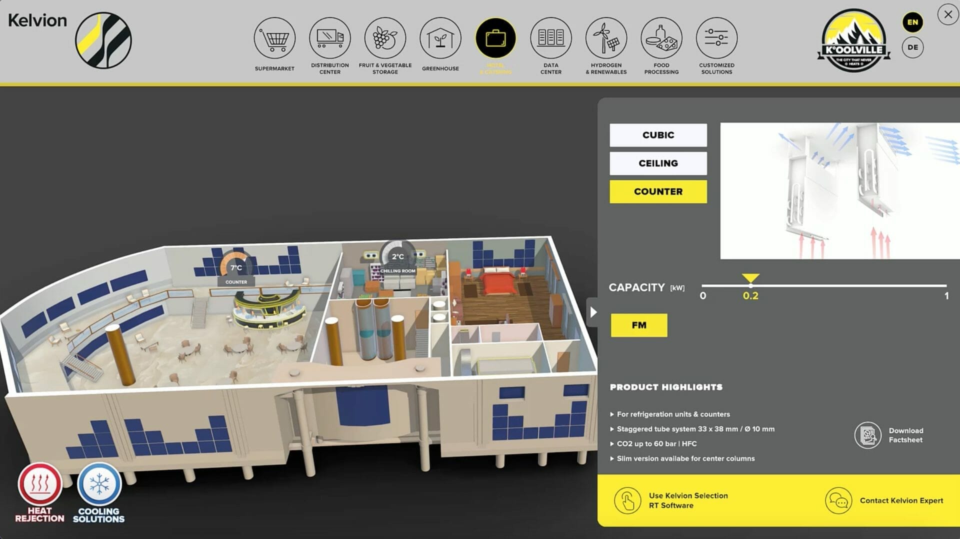 Die Kombination aus atemberaubenden 3D-Visualisierungen und praktischen Tools vereinfacht die Kundenberatung. Dies stärkt die allgemeine Markenbekanntheit von Kelvion, erhöht die durchschnittliche Verweildauer auf der Website und die Anzahl der Klicks, steigert die Lead-Generierung und beweist, dass KoolVille ein effektives Instrument zur Verkaufsunterstützung ist.