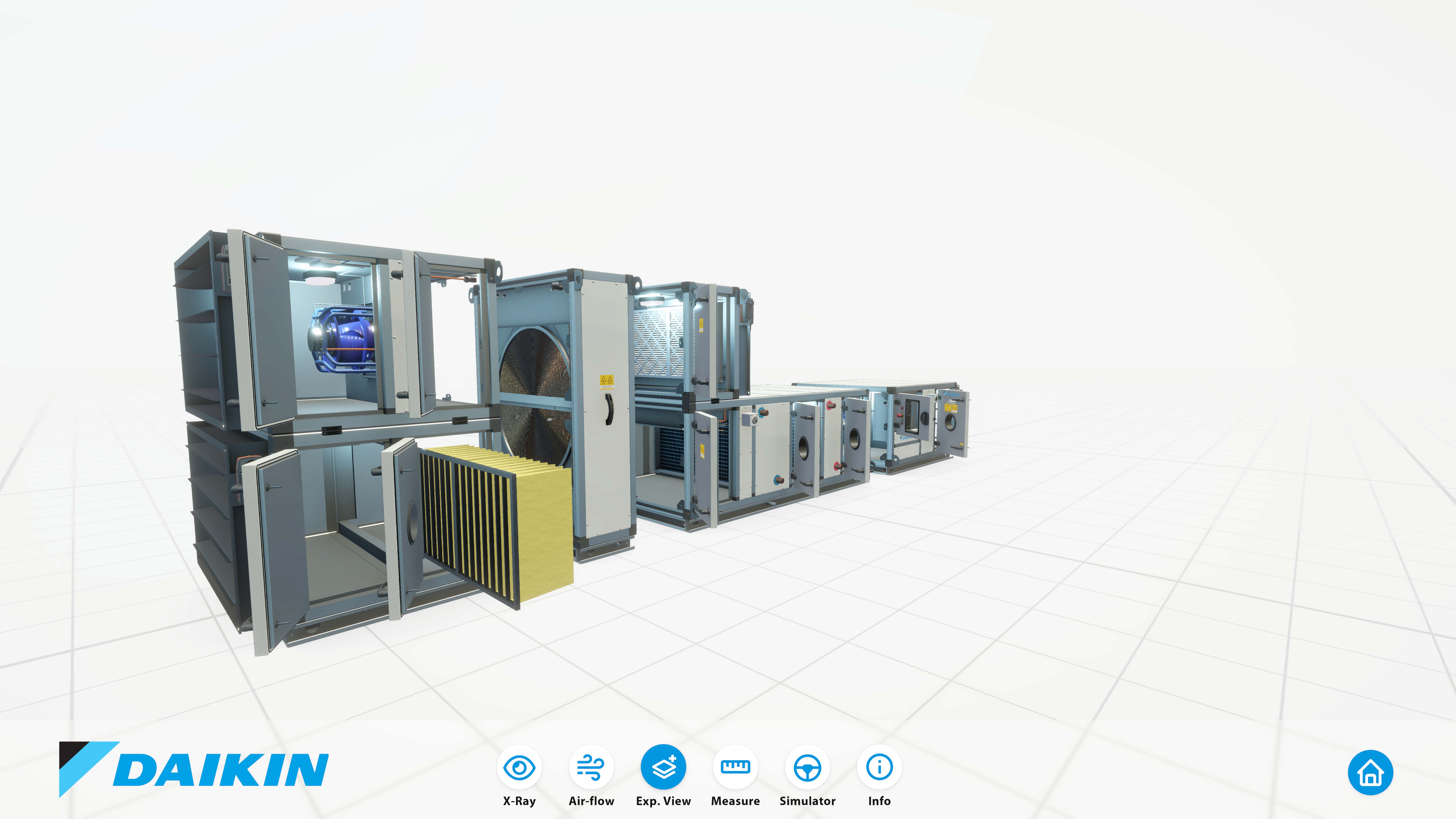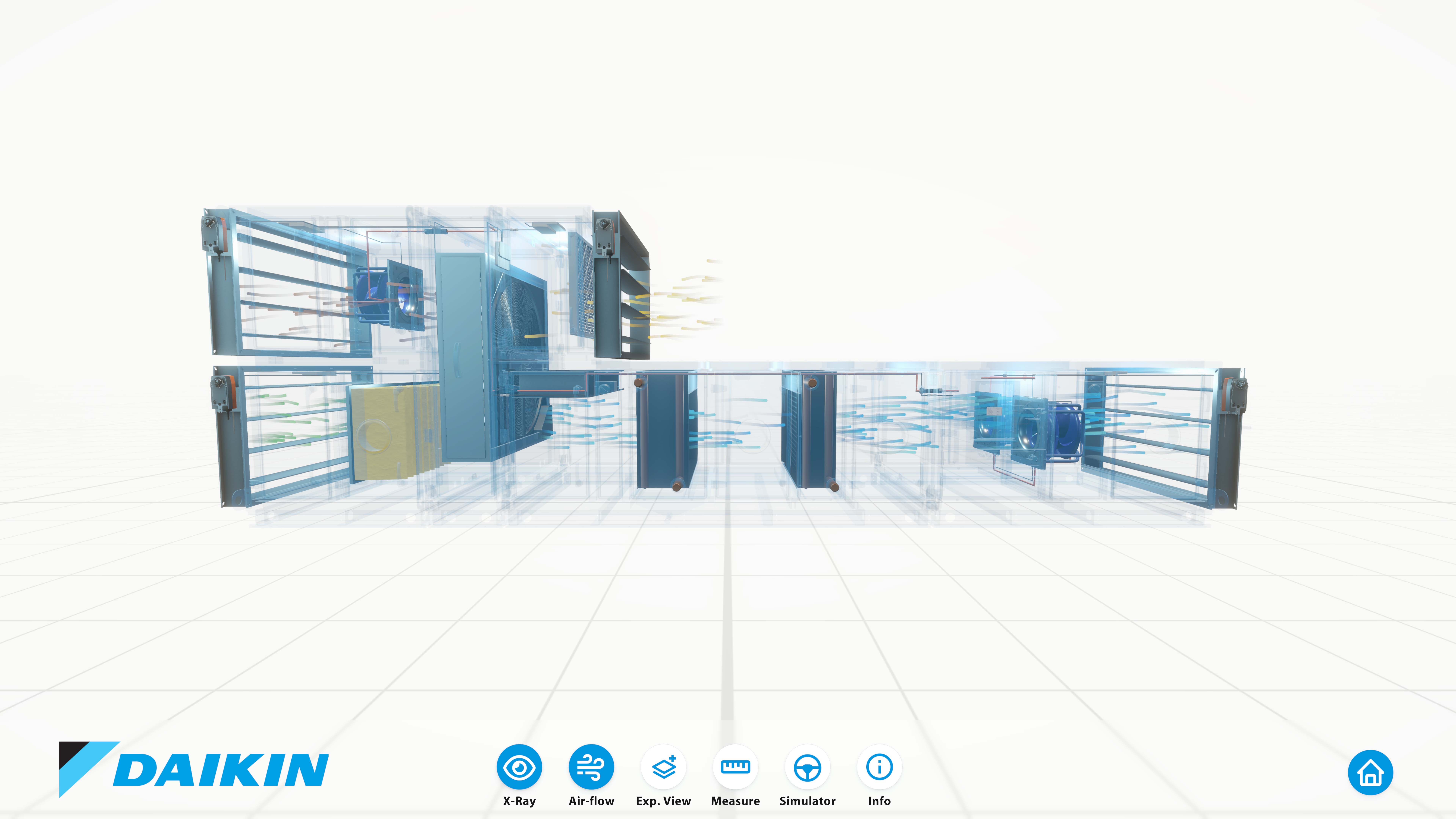 MRstudios built a 3D sales app for Daikin Australia's AHU range, featuring airflow visualisations, seasonal mode with live performance data and USP animations.