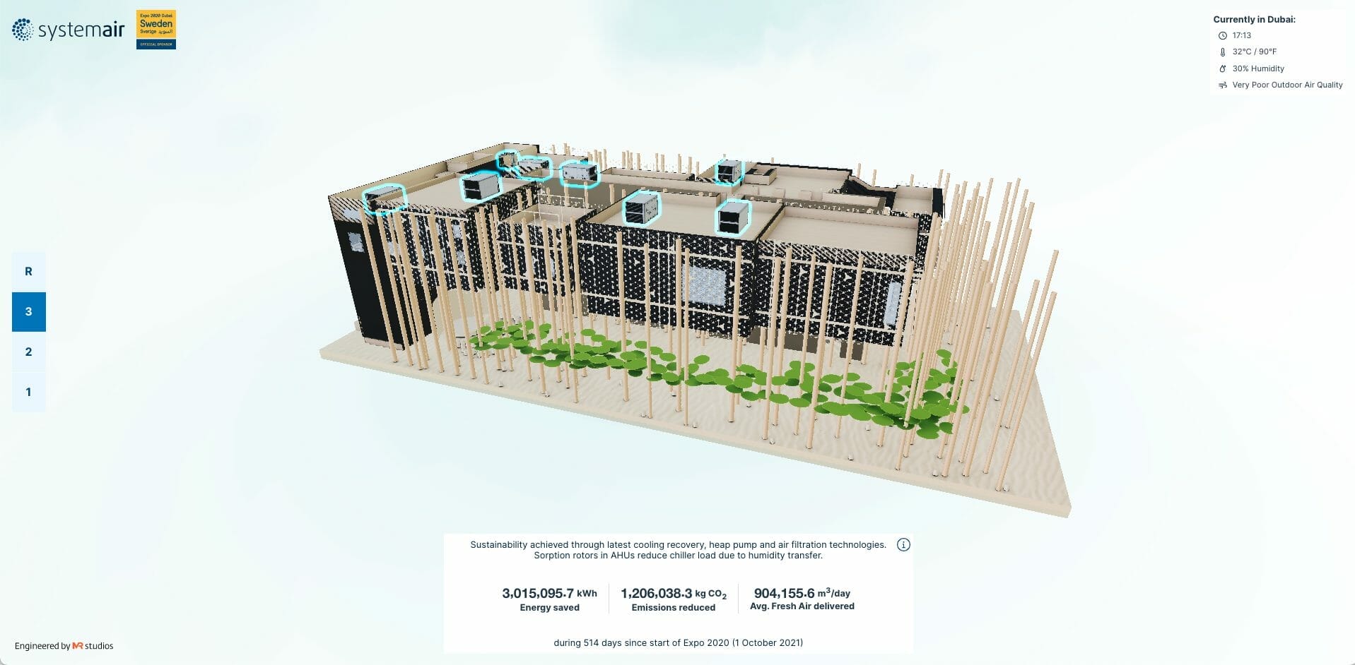 Systemair is one of the leading companies in the ventilation industry. They aim to provide the best environment and cost efficient services even in the most challenging situations – such as in the sandy and hot weather conditions in Dubai, UAE, where the Systemair-sponsored Swedish Pavilion was built as part of the Dubai Expo 2020.
